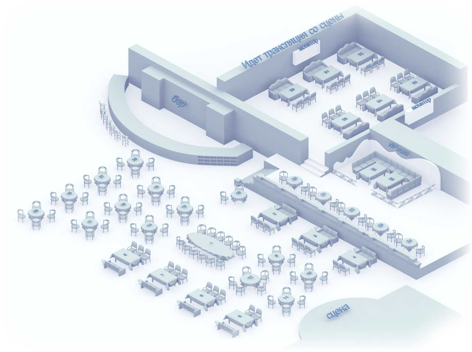 Визуализация зала осуществляется в программе 3d MAX, поэтому не имеет ограничений.